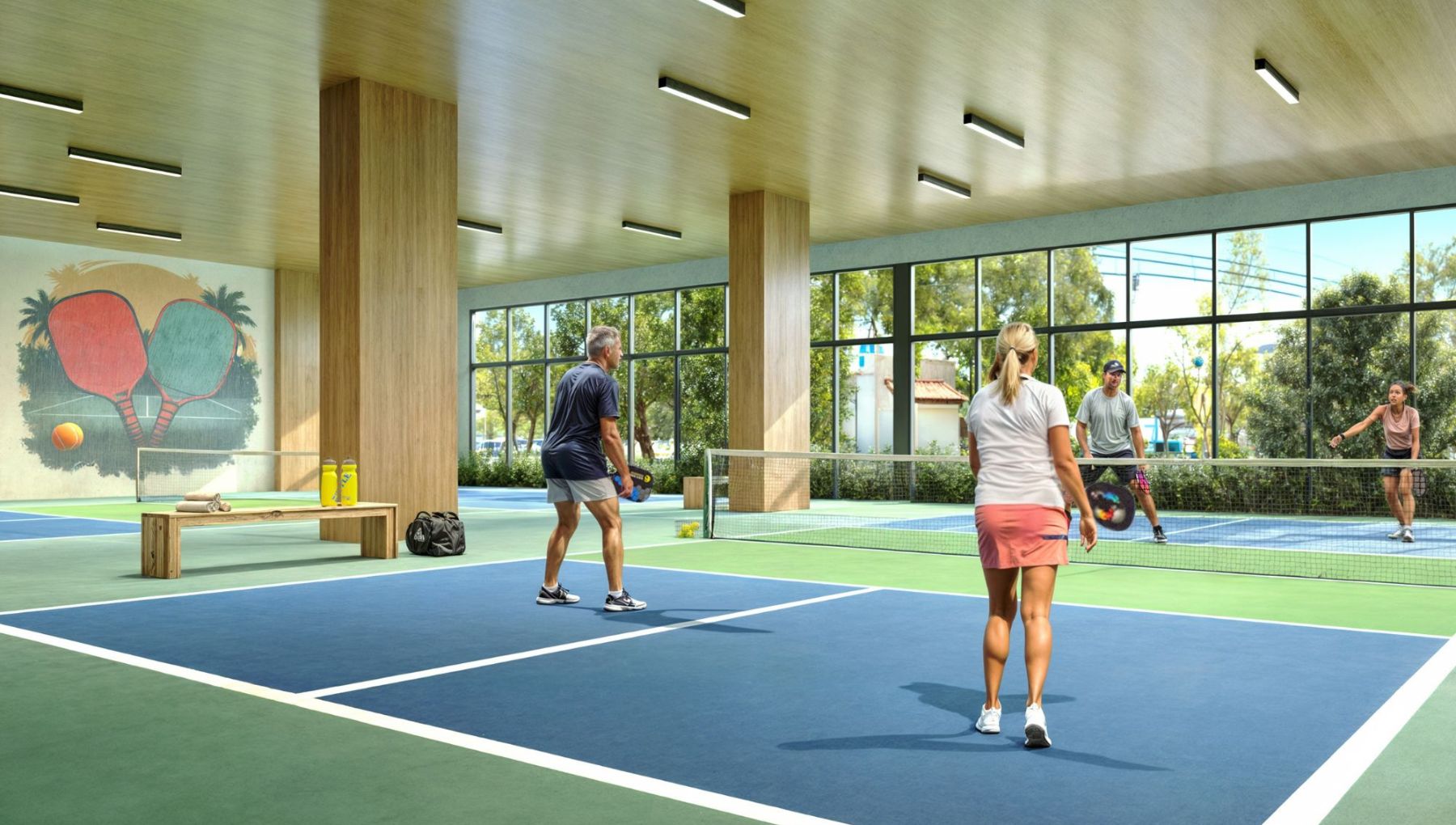 Canchas de pickleball interiores para disfrutar con amigos o vecinos